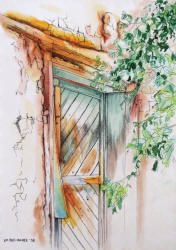 'Adobe Door on Rt. 3' crow quill pen and ink, watercolor, gouache on paper Available thru Art & Stones Gallery |