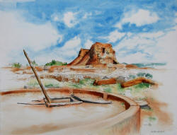 'Kiva and Mission: Pecos' crow quill pen and ink, watercolor, gouache on paper Available thru Art & Stones Gallery |