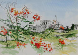 'Tulum, Yucatan' pen and ink with watercolor on paper (private collection) |